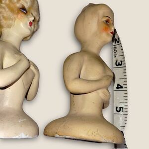 Vtg K.G. 1925 Chalkware Half Dolls-Flapper Art Deco Style Painted Wigged Germany