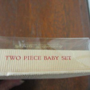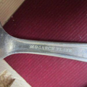 The child's silverplate flatware set is in the original box. I have not cleaned it and only removed from the box for pictures. Sure it is preowned and believe it is from 1947 as that is written in pencil on the back of the box as shown. From King Edward Silverplate. Marked Monarch plate on the flatware.