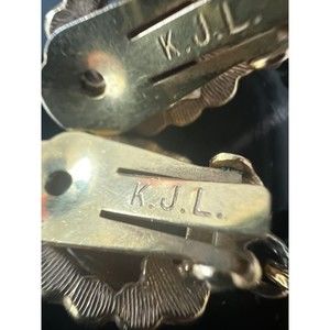 Vintage signed KJL Chandelier Earrings Clip on Early 1960's Brown Cabochon Rhinestone Dangle .