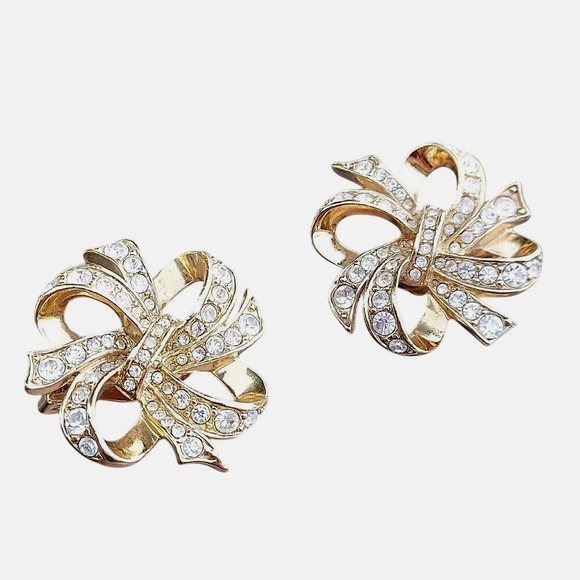 Vtg KJL for Avon Runway Elegance GP Rhinestone Swirling Bow Earrings Exc