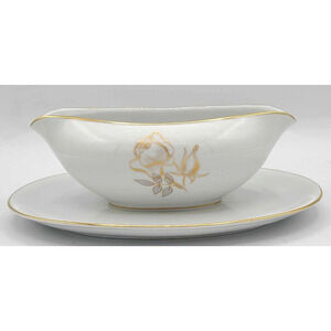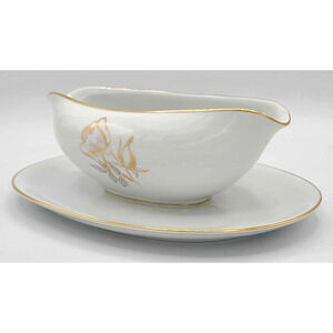 Vtg KPM Krister China Germany Sauce Gravy Boat and Creamer. Gold Rose Design