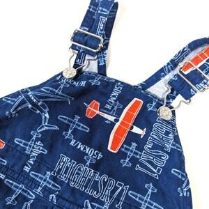 Vintage KRU adorable blue shortalls in an all over airplane print. Size 12m