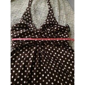 Vtg KSL Stretchy Dress Size 20 Brown White Polka Dot Pin Up Retro Halter Midi