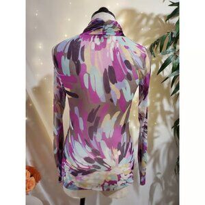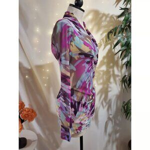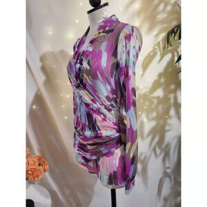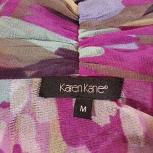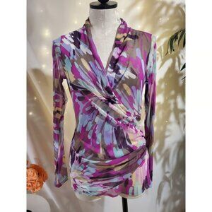 Vtg Karen Kane Mesh Crossover Ruched Drape Wrap Top Womens Size M Abstract Y2K