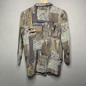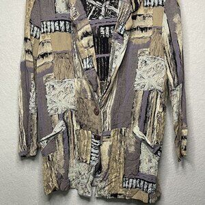Vtg Karen Kane Petite Light Weight Blazer Jacket Geometric Pattern Multicolor