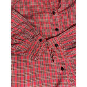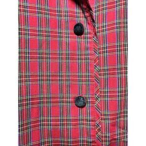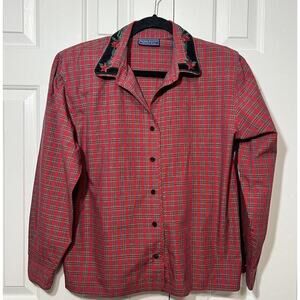 Vtg Karen Scott Red Green Tartan Plaid Velvet Trim Poinsettia Collar Shirt Sz L