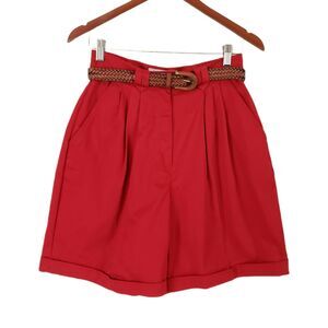 What you are Buying: Vtg Karen Scott Size 8 PETITE Red Pleated High Waist Cuffed Mom Shorts w/ Belt