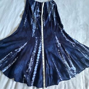 Vtg Karibo Womens Tie Dye Blue Pull On Midi Skirt Sz 8 Whimsigoth Boho Hippie