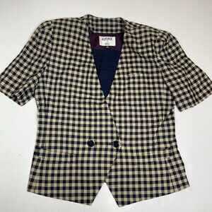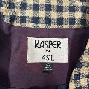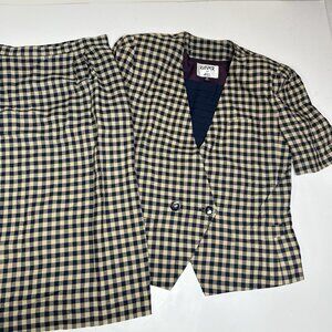 Vtg Kasper For ASL 2pc Skirt Suit Gingham Tan Double Breasted Jacket Lined Sz 14