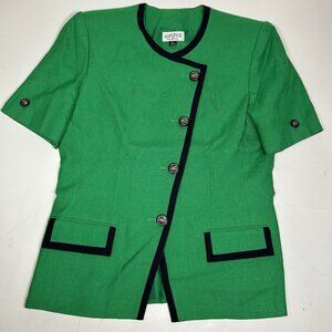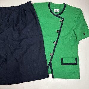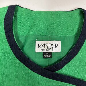 Vtg Kasper For ASL 2pc Skirt Suit Green Blue Short Sleeve Pleated Front Lined 14