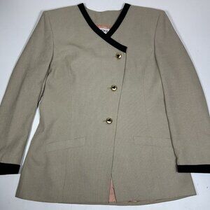 Vtg Kasper For ASL 2pc Skirt Suit Tan Black Long Sleeve Pleated Front Lined 14