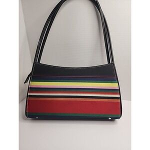 Vtg. Kate Spade Canvas Striped Shoulder Bag & Matching Wallet Colorful 90's READ