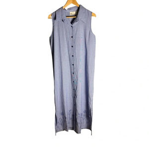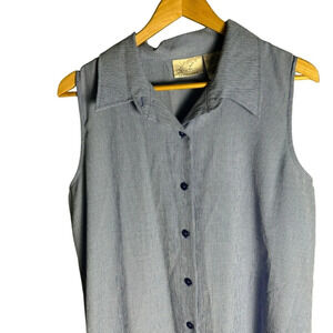 This beautiful vintage Kathie Lee dress is perfect for any occasion. The blue and white gingham check pattern gives it a classic and timeless look. The dress features a V-neckline, sleeveless design, and a button closure.