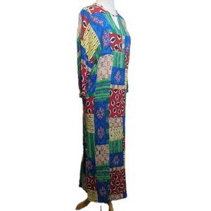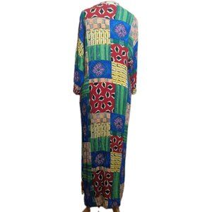 vintage maxi dress, patchwork dress, boho dress, festival dress, artsy dress, oversized dress, vintage pockets dress, colorful maxi, retro dress, casual maxi dress, loose fit dress, 90s dress, eclectic fashion, vintage bohemian, statement dress, hippie style dress