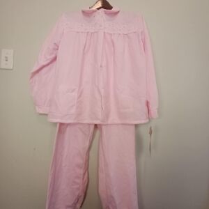 Vtg Katz W/Tags PJs Wns Lg Pink Embroidered Flowers Eyelets PJ's 2 Piece Granny