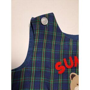 Vtg Kellys Kids Plaid Jumper Dress With Bear Applique & Sunny Embroidery Size 5