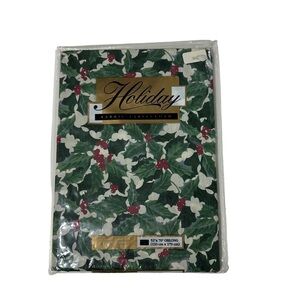 The tablecloth is new in package, ready to be used and enjoyed. The Kemp & Beatley Holiday Holly and Berries Tablecloth is a must-have for any home looking to create a warm and inviting atmosphere during the holidays.