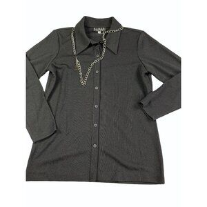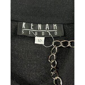 Vtg Kenar Studio Womens Size 10 Black Button Front Blouse Top with Necklace New