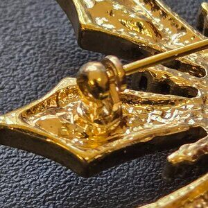 Vtg Kenneth Cole KC 8-Pointed Starburst Snowflake Brooch Rhinestones Goldtone