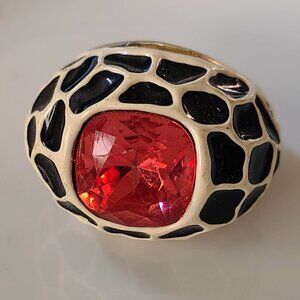Vtg Kenneth Jay Lane KJL Black & Cream Enamel Huge Pink Orange Crystal Ring