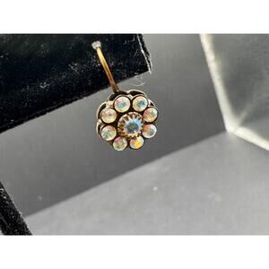 Vtg Kenny Ma Signed Gold Tone Crystal AB Rhinestone Pierced Dangle Drop Earrings