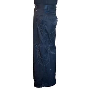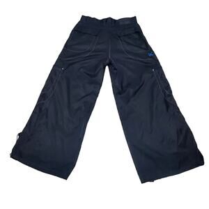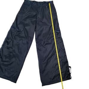 Vtg Kik Wear Baggy Wide Leg Black 90s Raver Skate Cargo Pants PunkCore Nylon Y2K