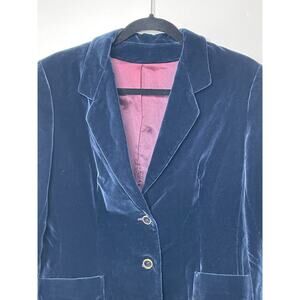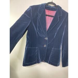 Vintage Kirkland Hall Union Made Blazer Jacket Velvet 2 Button Dark Navy Blue