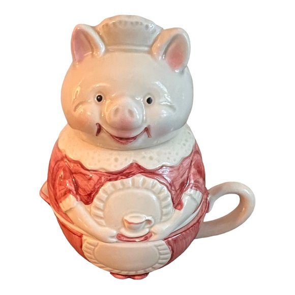 Vtg Kitchen Helpers Stackable Sugar and Creamer Pig Pink, White Ron Gordon1986