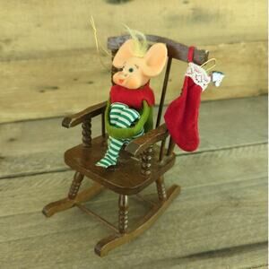 Vtg Kitschy Mouse Knee Hugger Christmas Ornament Made in Japan Anthropomorphic