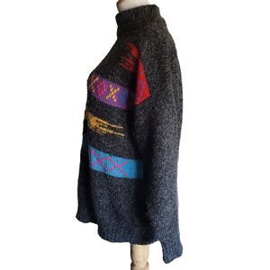 Vintage Kitty Hawk Women's Gray Aztec Abstract Sweater Colorful 80's 90's New Wave Size Medium