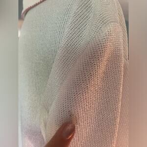 Very faint tiny mark on sleeve. shown in last photo. Would probably come out when washed.