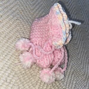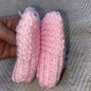 Vtg Knit Handmade Pink & White Baby Booties Bundle