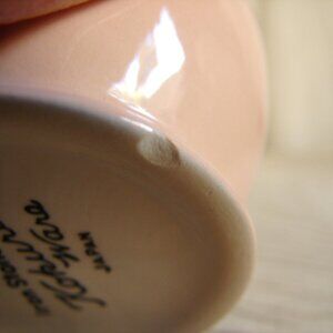 Lovely apricot colored exterior with white interior and handle.