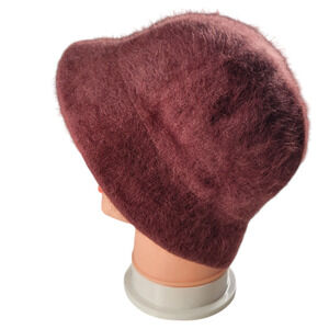 Vintage Kolob angora-blend cloche hat in a soft, fuzzy brown. Wide-brim bucket style, likely from the 1980s or 90s. 90% angora / 10% polyester. Lightweight and warm with a luxurious texture.