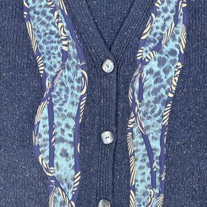 Vtg Koos Of Course Silk Cardigan 2XL Oversized Blue Wearable Art to Wear Jacket
