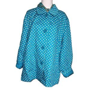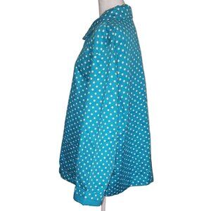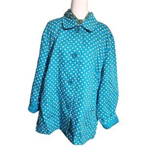 This Koret women's coat offers a stylish polka dot pattern in a vibrant turquoise color. Designed with a classic button-up style, it provides comfort and warmth. Ideal for professional settings, its plus size fit ensures a flattering and relaxed wear, making it both functional and fashionable.