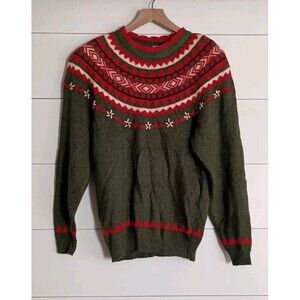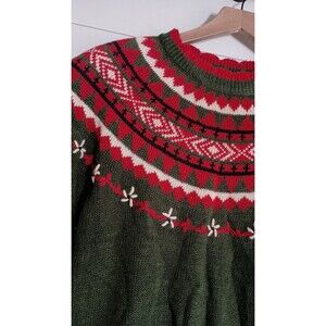 Vtg Koret Sweater SMALL Red Green Fair Isle Knit Grannycore Knit 90s Embroidered