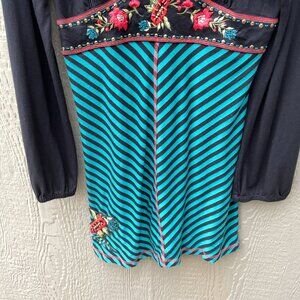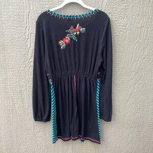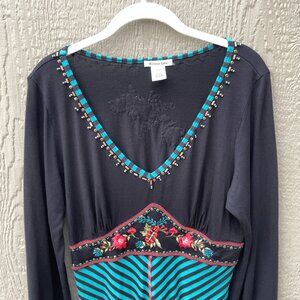 Vtg Krista Lee Dress Size L Embroidered Floral Beaded Long Sleeve V-Neck