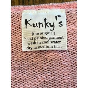 This absolutely adorable hand painted Kunkys knit sweater is whimsical and perfect for summer! It does not have a size tag, so please see photos for measurements. No flaws to mention.