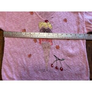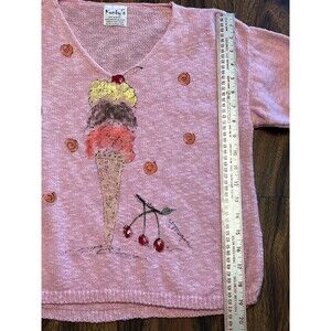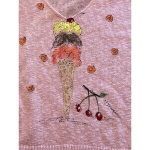 Vtg Kunky's Knit Sweater Pink Hand Painted Ice Cream Cherries Summer Sz M (?)