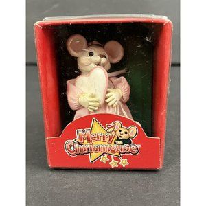 Vtg Kurt Adler Jingle Bell Mouse Ornament with Heart Ceramic Anthropomorphic