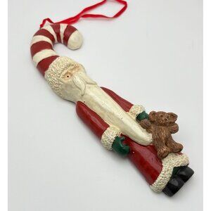 Vtg Kurt S Adler Santa Claus Candy Cane Christmas Ornament Holding Teddy Bear