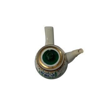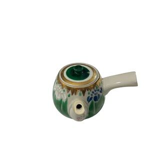 Vtg Kutani Tea Set of 7 Shobu Yunomi Yaki Gold Gilt Green Blue Tea Pot Cups Bowl