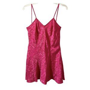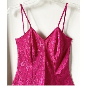 Vtg LA INTIMATES Satin Camisole Slip Dress Jacquard Hot Pink Valentines Sz M USA