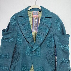 Vtg LAMB Gwen Stefani Blazer 10 Teal Brocade Jacket Y2K Distressed Eclectic Rare