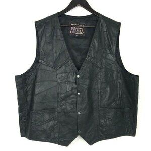 Vtg LC Leather Club Black Leather Vest Snap Front Western Motorcycle Biker Sz 54
