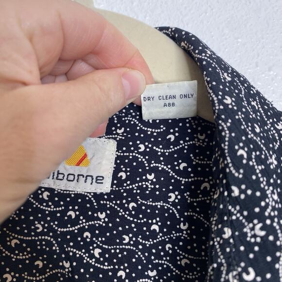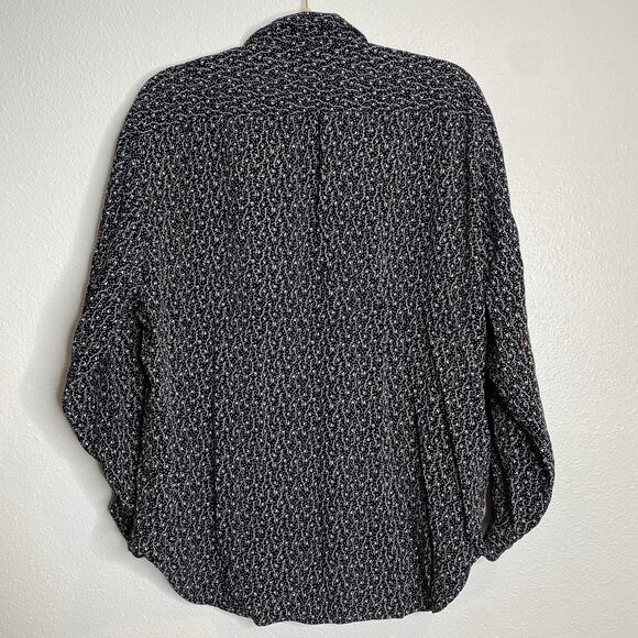 Vtg LIZ CLAIBORNE Rayon Black And White Button down blouse top Size 12