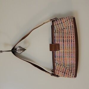Vtg LIZ CLAIBORNE Y2k Pastel Rainbow Metallic Basket Tweed Carpet Baguette Bag
