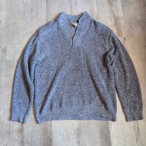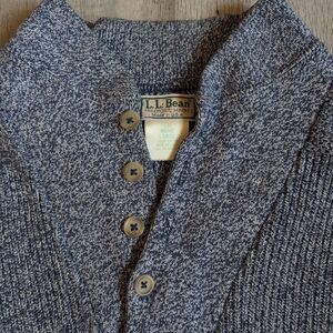 Vtg LL BEAN Size Large L Sweater Shawl Collar With Button Heather Blue Pullover