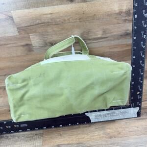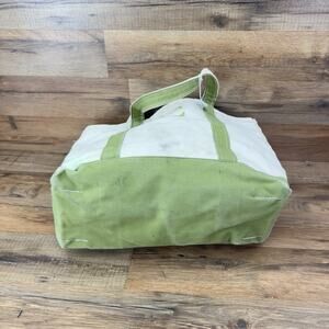 Vtg LL Bean “E” Boat Tote Small Bag Natural With Olive Green 13" by 9.5"